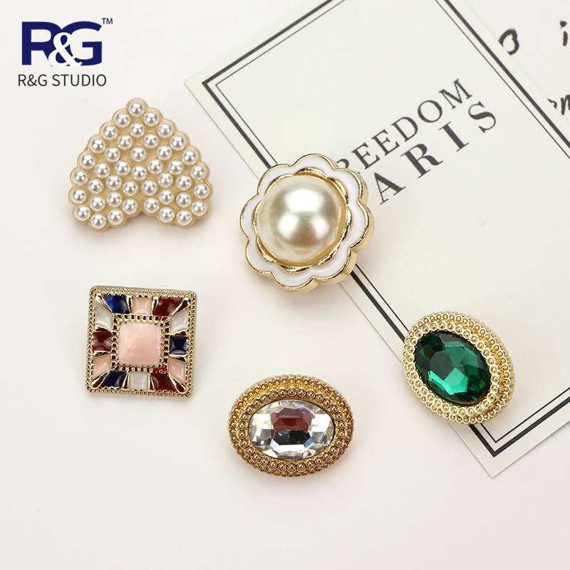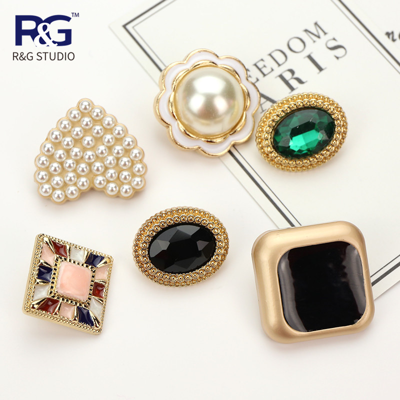 Retro oval metal diamond button square button peach heart pearl button women's jacket sheep shearing woolen coat button