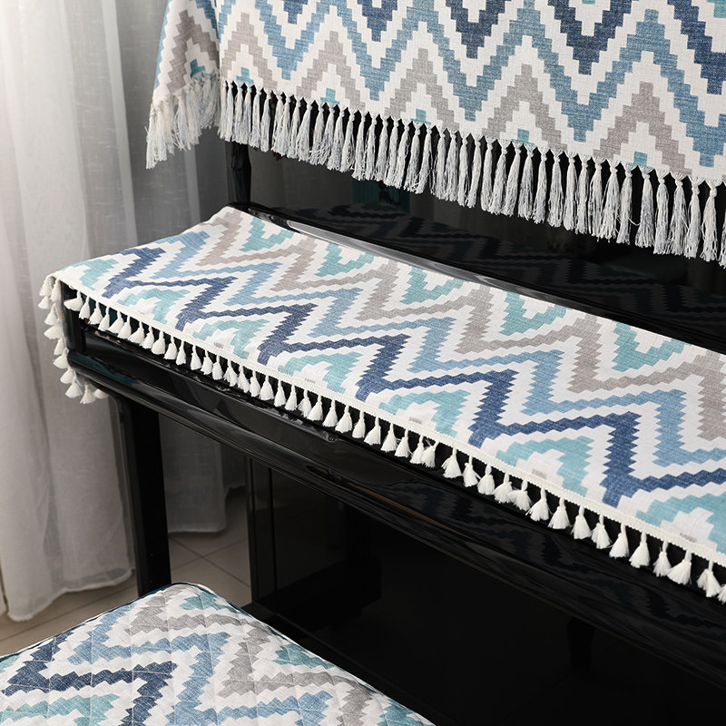 Piano three-piece set half cover simple embroidered key cover mahogany vertical universal dust cover mountain leaf curtain