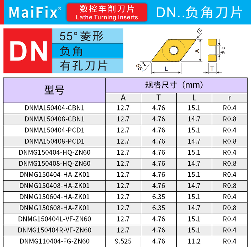 DNMG150404-HQ ZN60DNMG150404L-VF ZN60DNMG150404R-VF ZN60DNMG