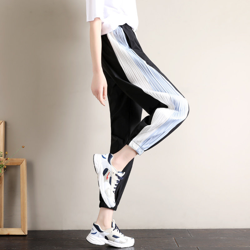2023 Summer slim fit new mistress sportswear women dress Harlan big code loose bunches foot ice silk cool casual pants-Taobao