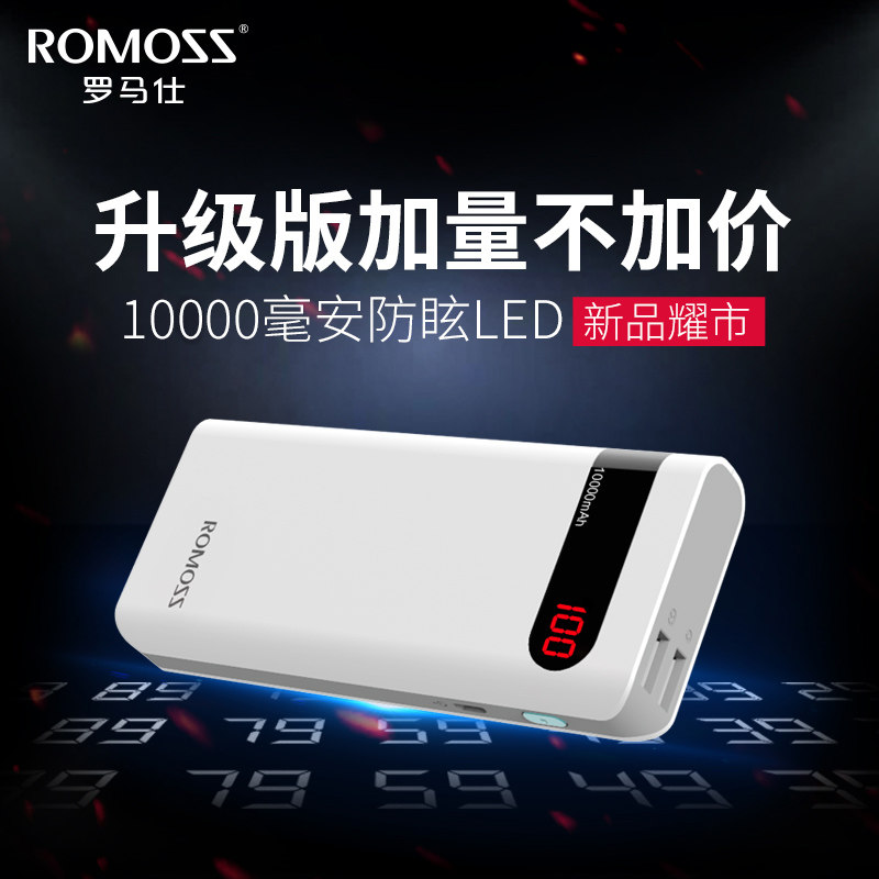 Customized ROMOSS Romans 10000mAh mobile charging sense4P mobile phone tablet LED digital display mobile power supply support private enterprise custom lettering printing LOGO gift