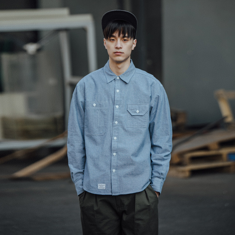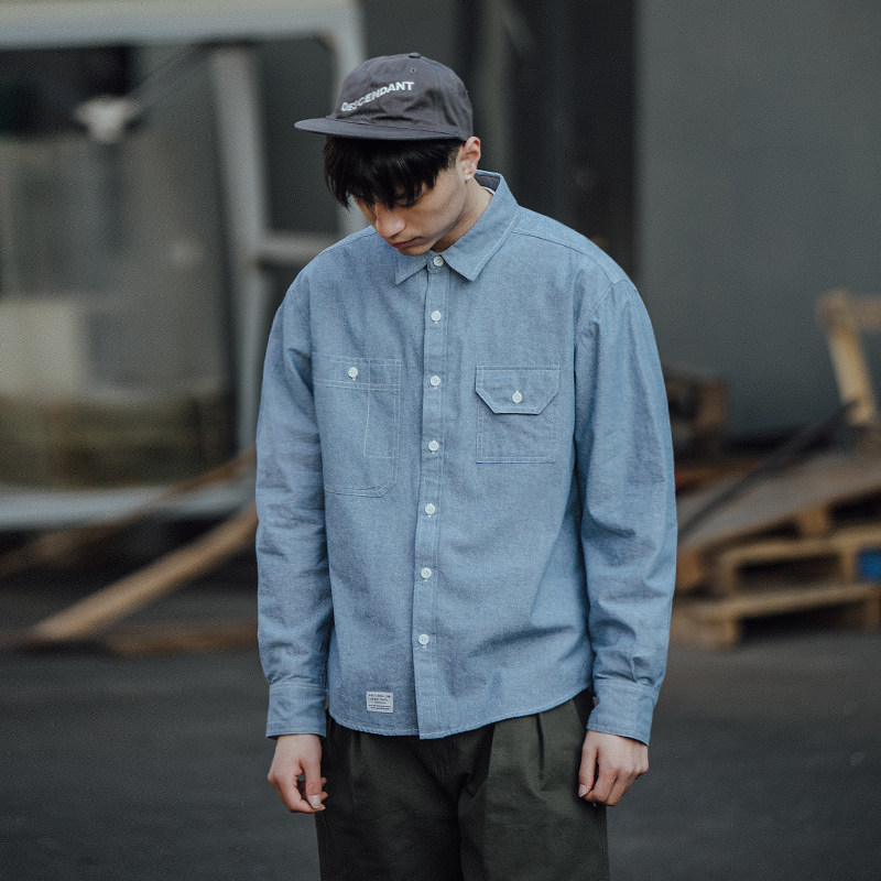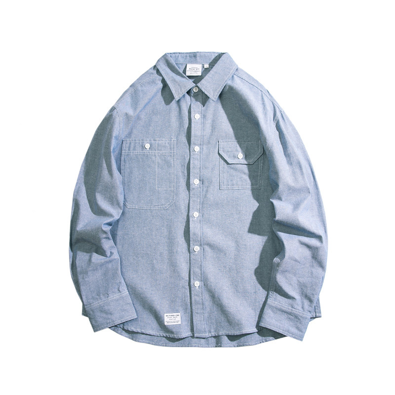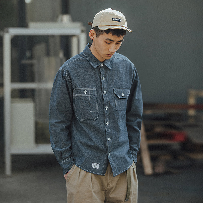 BDCT denim shirt men's thin long-sleeved loose autumn casual retro port wind Japanese trend shirt jacket trend