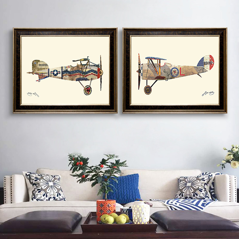 American living room decoration painting children's room free perforated wall painting Vintage classic car mural boy bedroom bedside hanging painting