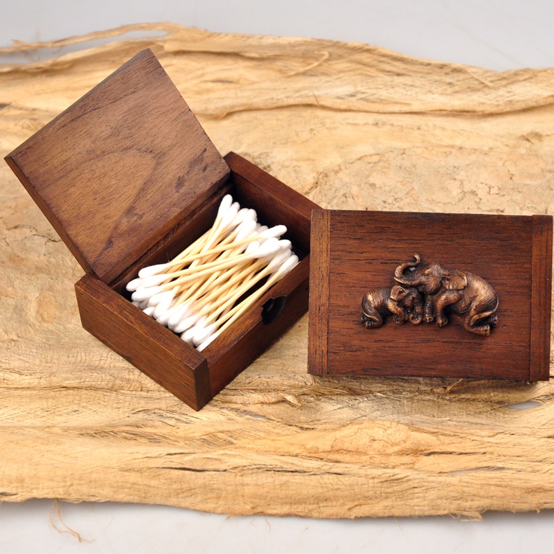 Flat Log Cotton Stick Box Relief Elephant Cotton Stick Box Round Side Log Cotton Stick Box