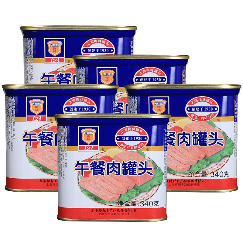 Merlin canned luncheon meat 340g*5 shabu-shabu luncheon meat ready-to-eat ham canned outdoor convenient canned breakfast