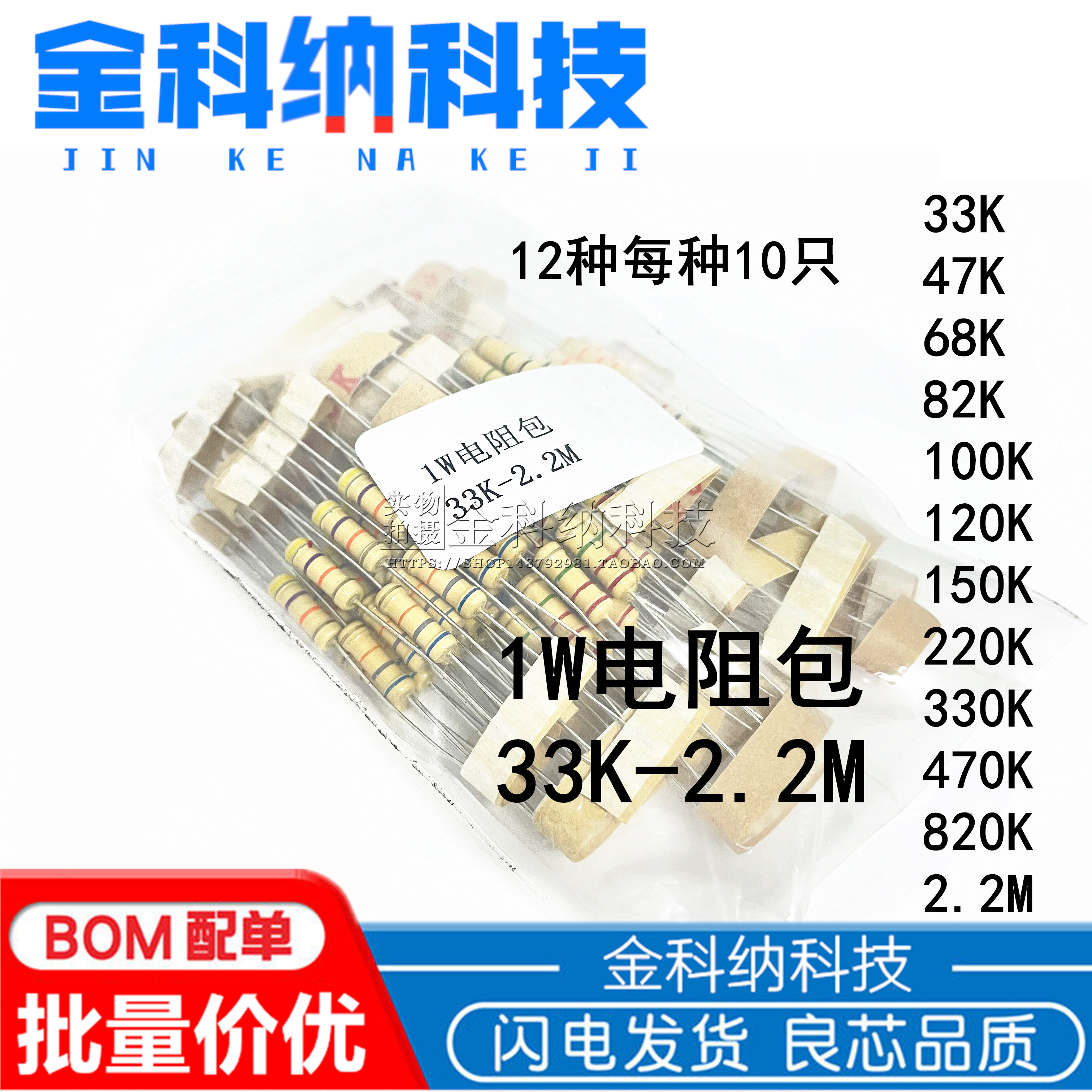 Component package 2W carbon film resistor package 56K-2 2M commonly used resistors, a total of 13 kinds of 5 each resistance package