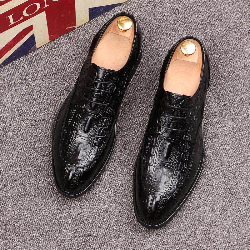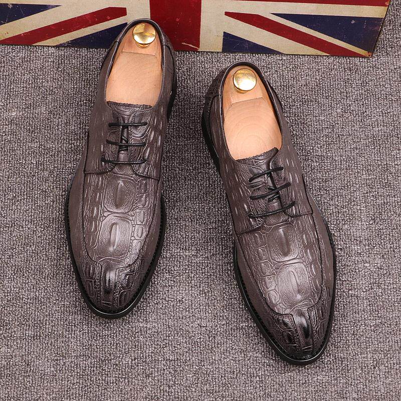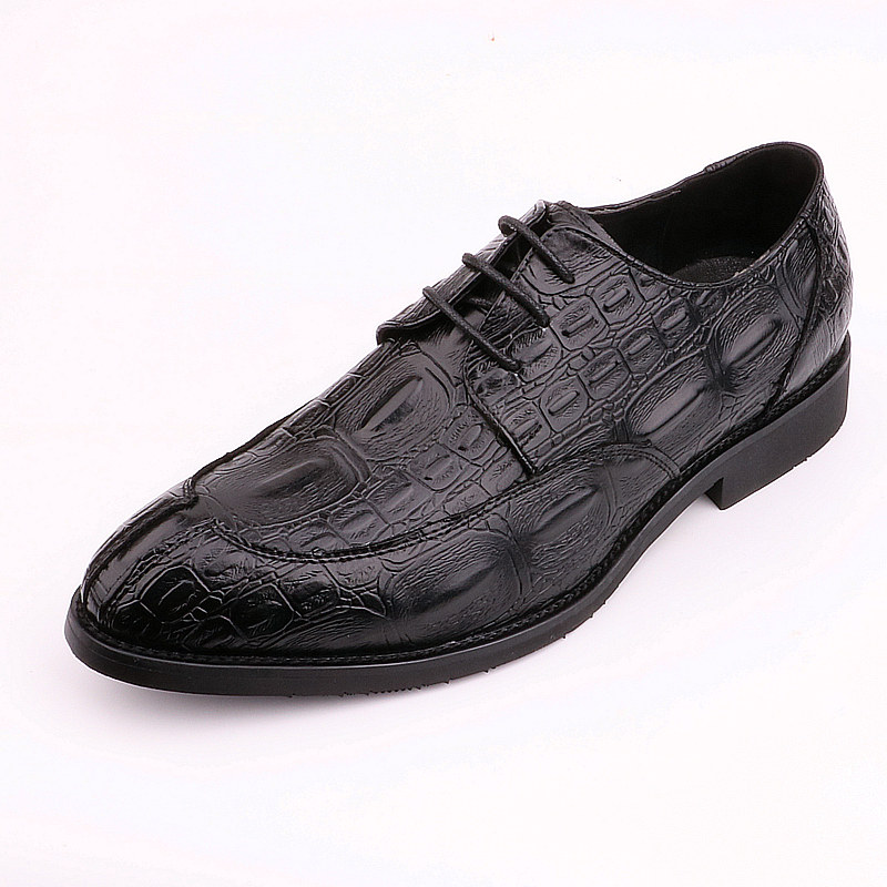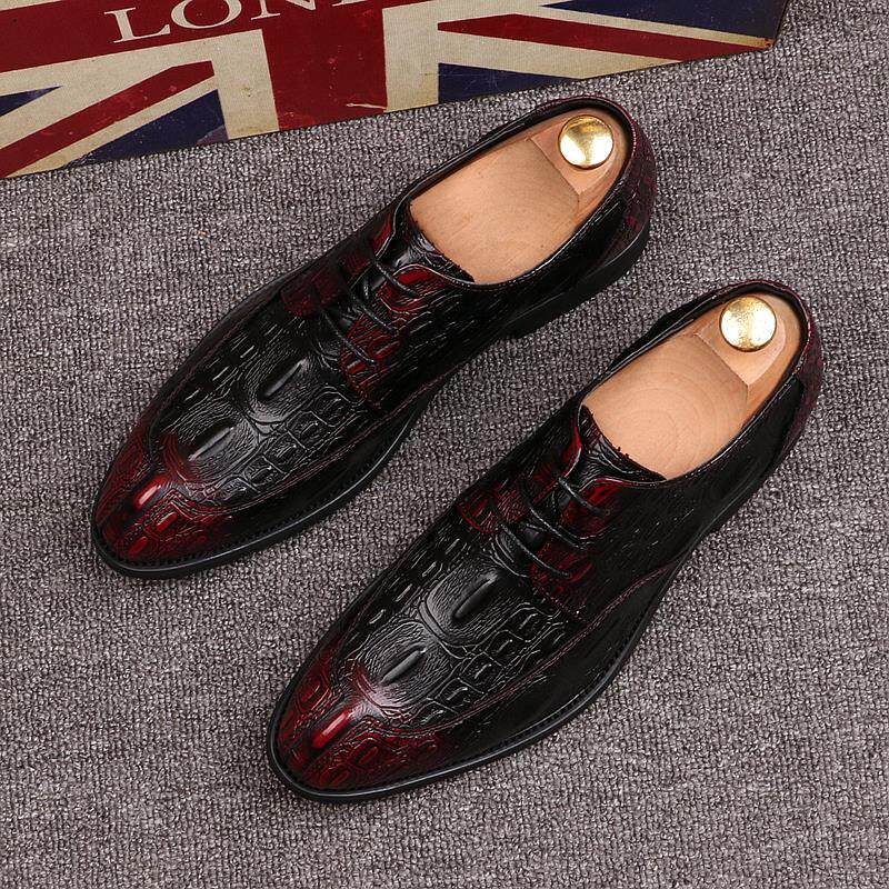 Crocodile pattern pointed toe shoes men's red retro trend men's shoes personality leather increase groom lace-up wedding shoes