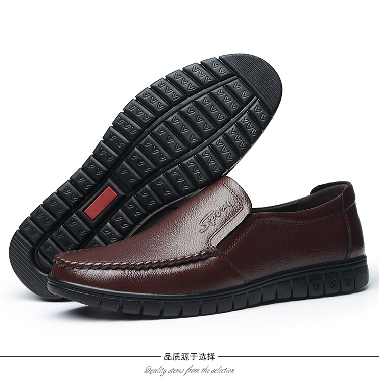 Men's leather work non-slip soft bottom dad leather shoes business casual flat middle-aged and elderly sandals men's single shoes