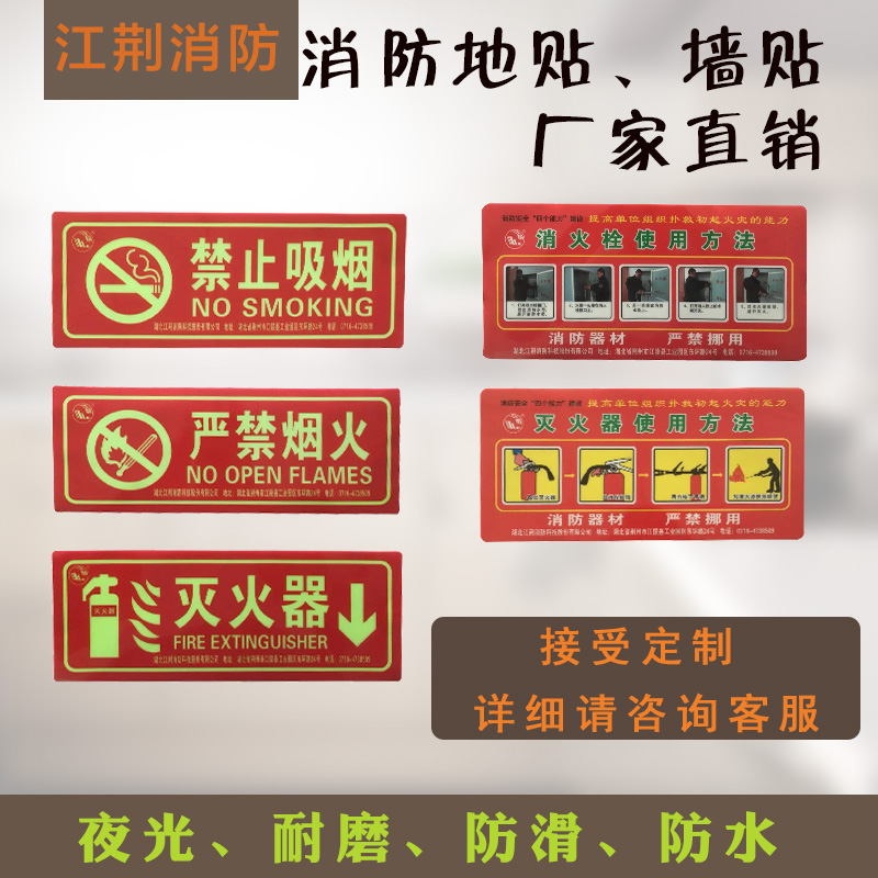 Jiang Jing safety exit carefully step to slide the floor to the wall fire extinguisher fire emergency luminous warning sign