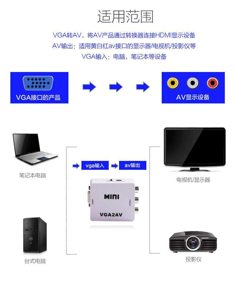 Old-style notebook desktop computer VGA port transfer AV connection old TV Three-color lotus line VGA transfer AV converter