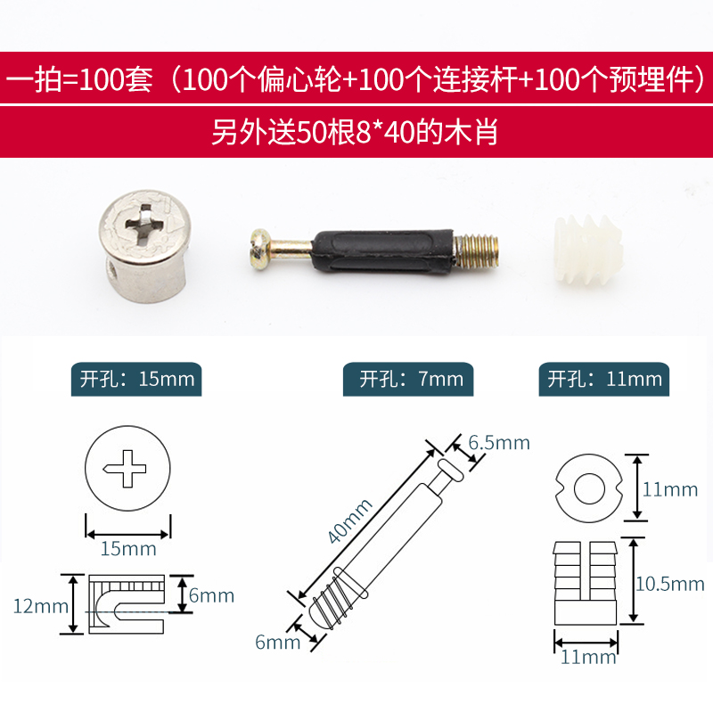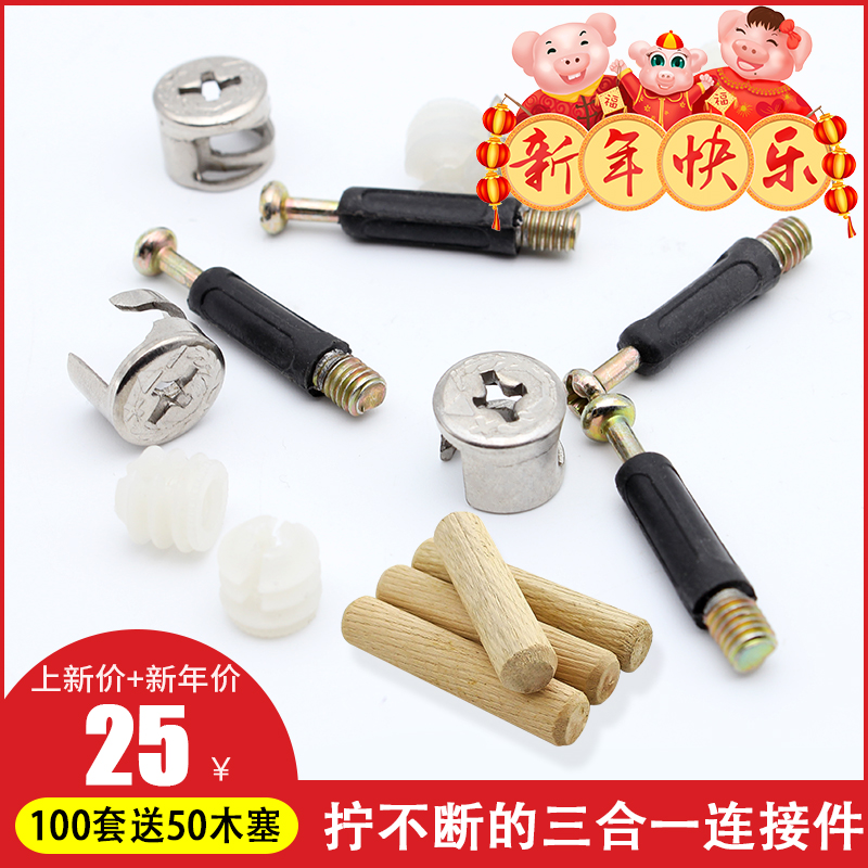 Panel furniture three-in-one connector screw fittings eccentric wheel pre-embedded fluffy nut wardrobe fasteners