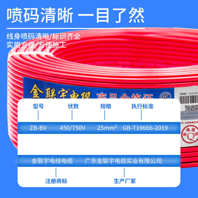 Jinlianyu cable national standard BV10 16 25 35 50 square copper wire double plastic copper core flame retardant wire loose shear