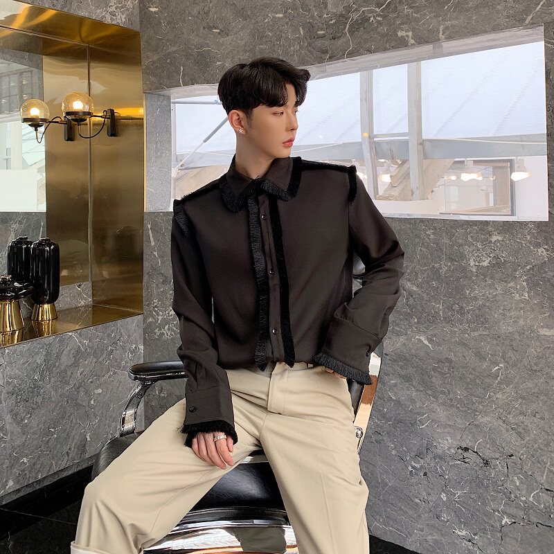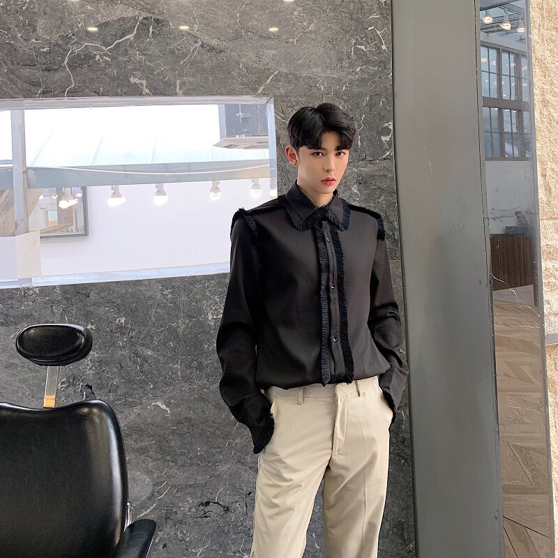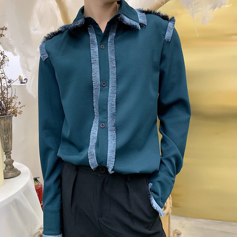 Early spring original design tassel decoration shirt male retro court gentleman long-sleeved shirt Harajuku hair stylist top