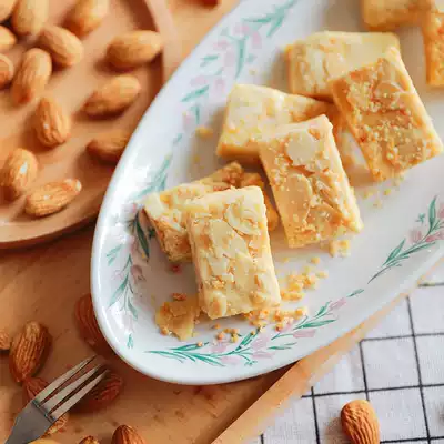 Malt syrup low gluten flour natural cream skimmed milk powder salted egg yolk white granulated sugar edible salt almond slices