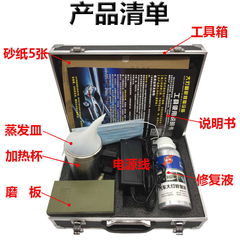 Hot-selling car headlight renovation tool set Yellow oxidation, blurring, cracking, scratches, fumigation repair coating