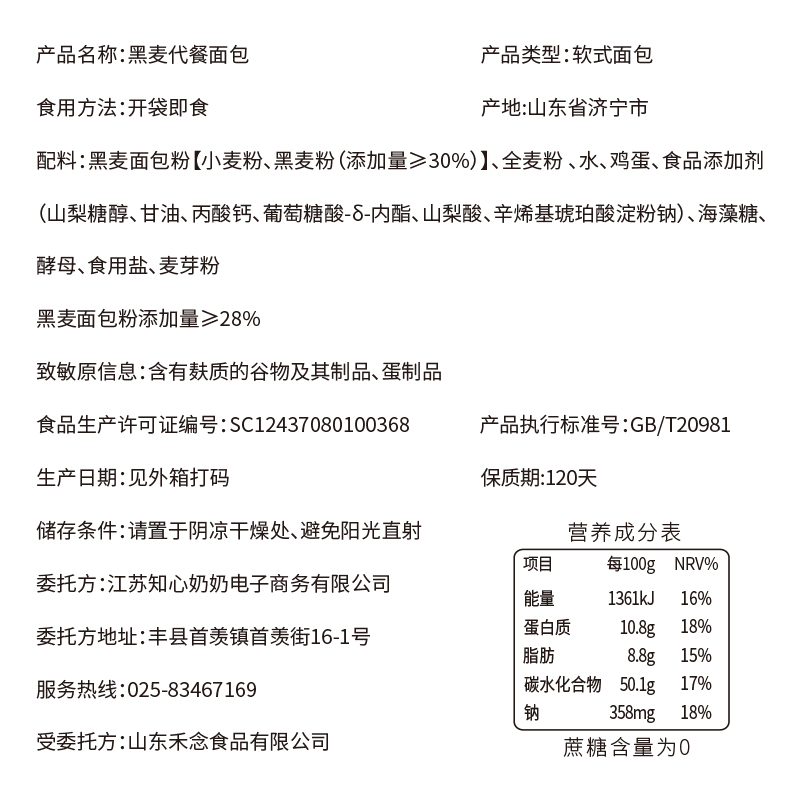 Know-heart Grandmother whole wheat bread Sugar Urine People Breakfast zero food No sugar Fine suited for the exclusive use of sugar Pee Pie patients eat