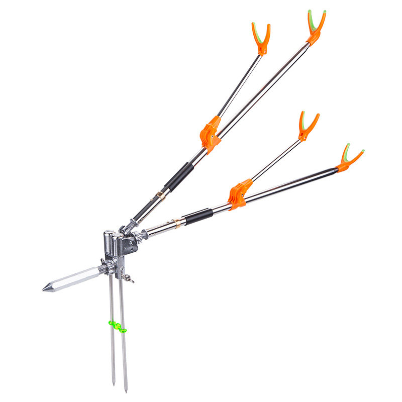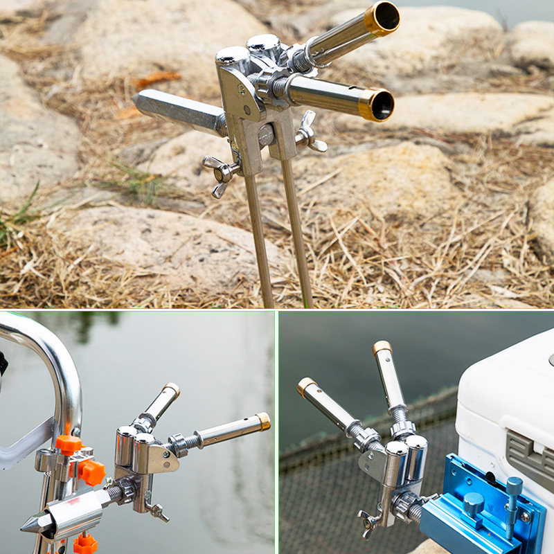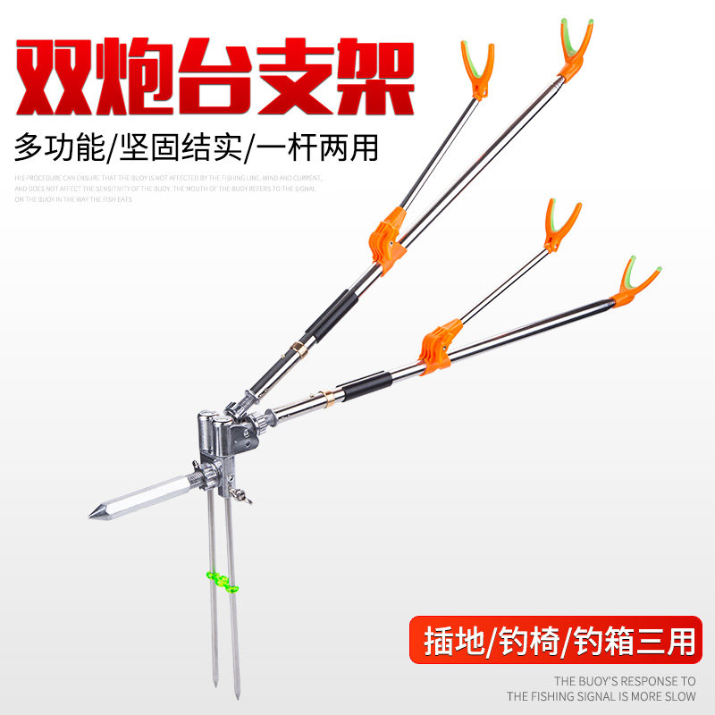 Stainless steel universal double gun fish bracket ground insertion fishing box table fishing double gun seat fishing chair double head bracket rod holder