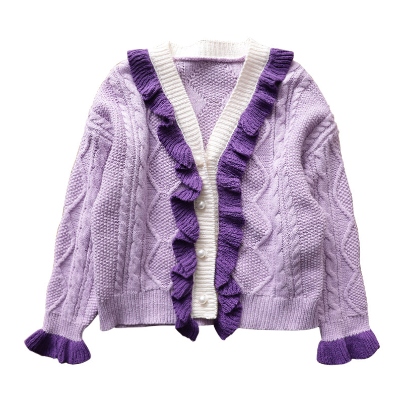 Princess wind girls cotton cardigan autumn new baby sweet wooden ear knitwear children's sweater 2021 Korean