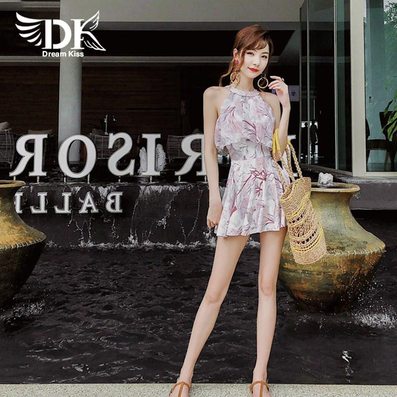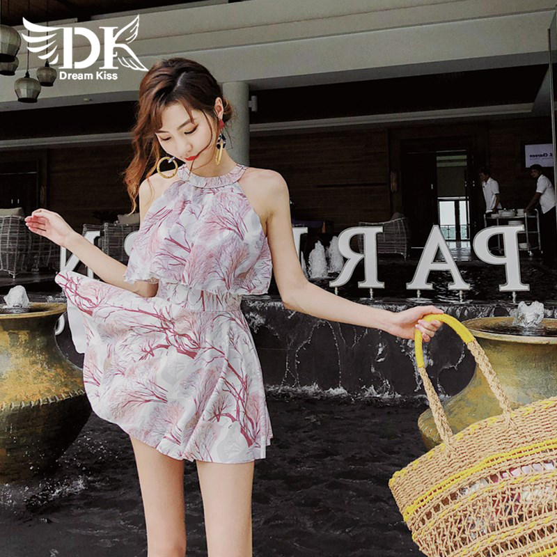 dk swimsuit women's hot spring conservative belly cover 2021 new one-piece skirt small chest gathered thin holiday swimsuit