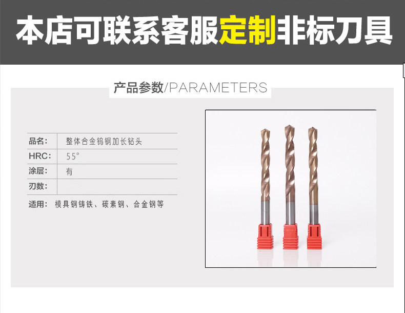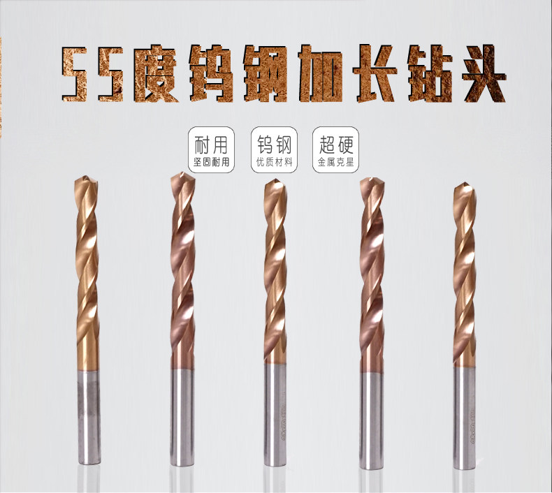 Lengthened tungsten steel drills integral alloy drills German Japanese imported ultra-hard coated stainless steel twist drill 6080