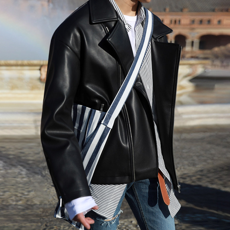 MRCYC autumn Korean version of the oblique zipper motorcycle leather jacket men's youth handsome PU leather jacket loose coat trend