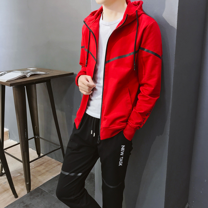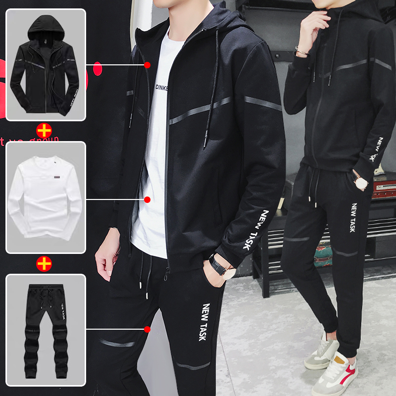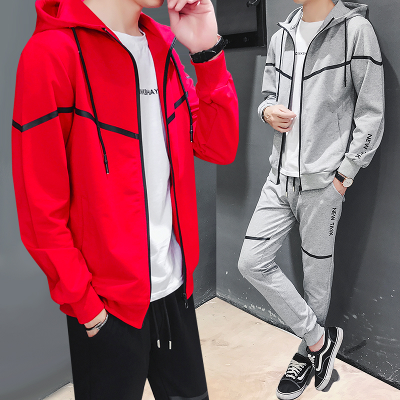 Men's thick T-shirt suit 2021 new autumn set of clothes Korean version trend casual sports top autumn jacket