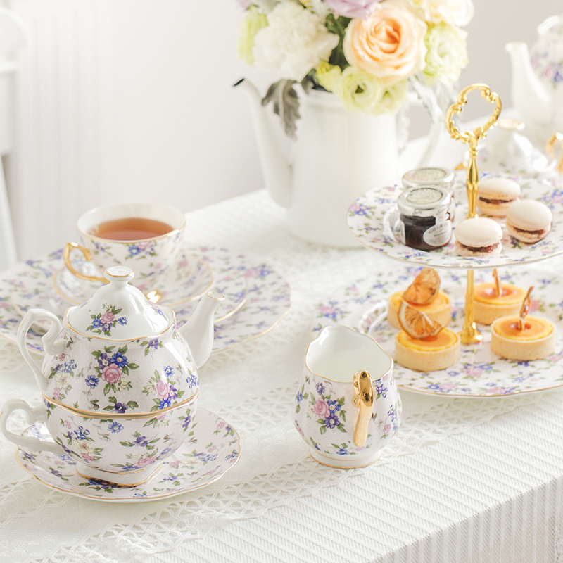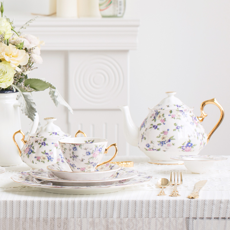 Coffee cups and saucers (all gold)Teapots (all gold)Sugar cans (all gold) Milk cups (all gold) Mother and child pots 8-inch plates 10 5-inch plates Double-layer skewers 1 teapot 2 cups and saucers (all gold)Gift boxes 1 Teapot 4