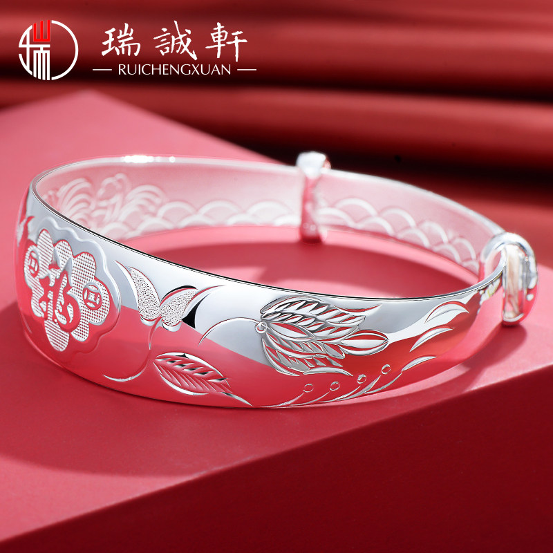 Bracelet mother sterling silver 9999 silver jewelry for the elderly to send grandma elders gift push-pull silver bracelet for women solid