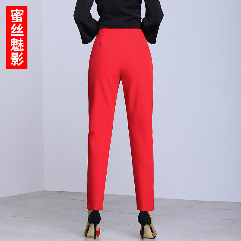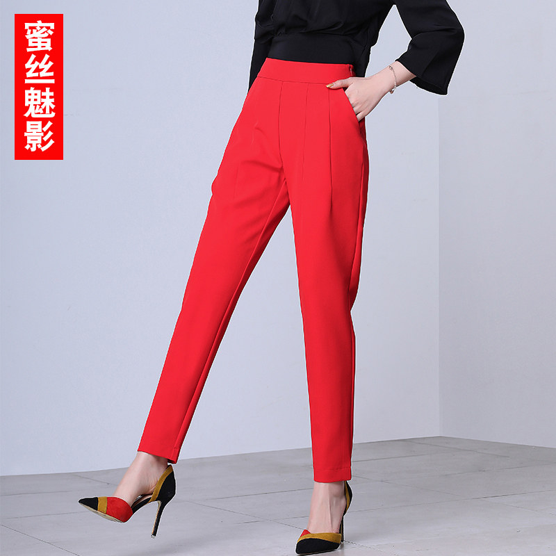 Red Harem pants women's summer thin hanging loose nine-point radish pants Casual small thin ice silk pants