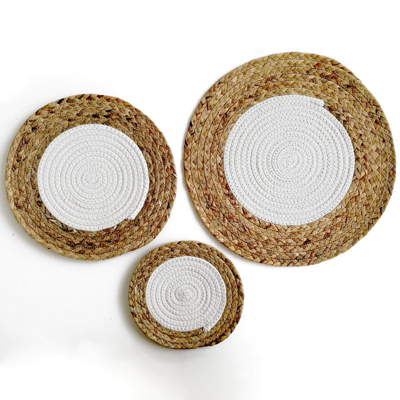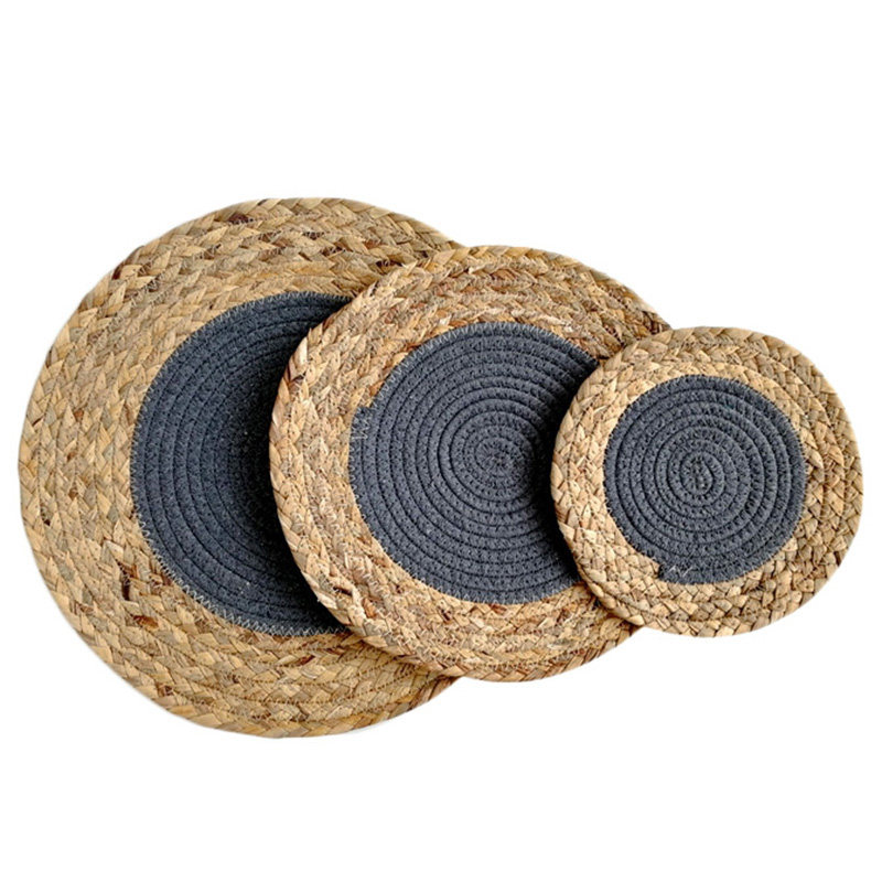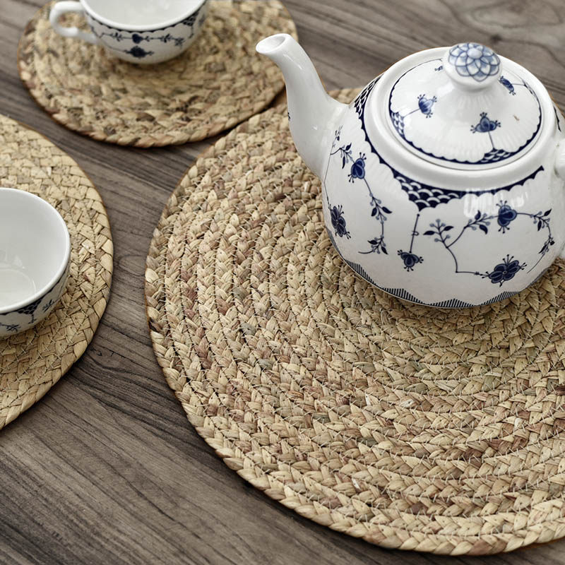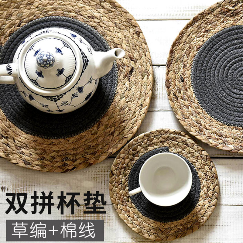 Handmade straw placemat Japanese heat insulation mat Woven mat Tea mat Table mat Bowl plate Cotton line coaster Pot pad round