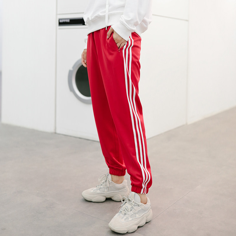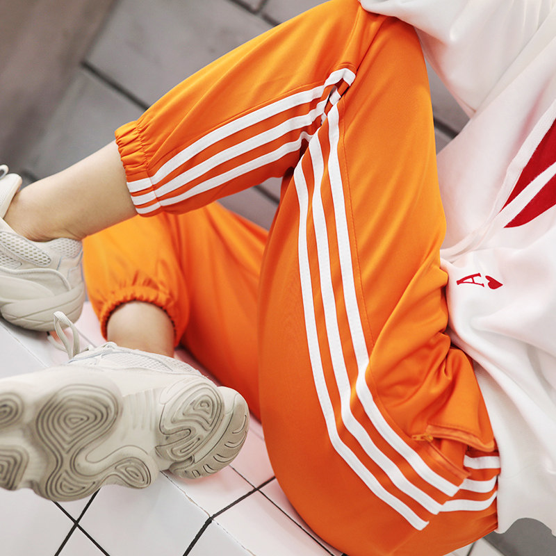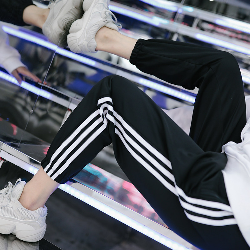 ins sports casual pants female Korean version straight cylinder 100 hitch loose side stripe expats slim hip-hop footrest pants spring tide