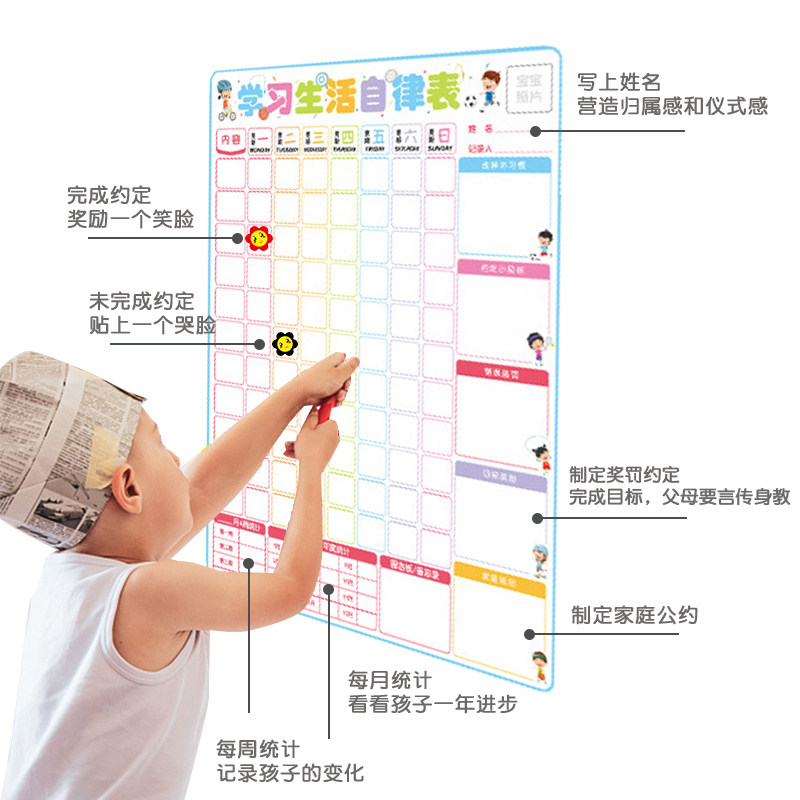 Child growth Self-discipline Table 2-3-4-5-6-12-year-old baby reward stickers Household praise stickers Kindergarten cartoon safflower penalty point card Primary school students good habits behavior record form