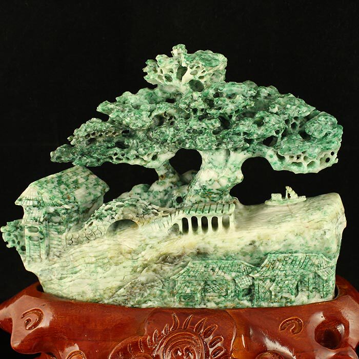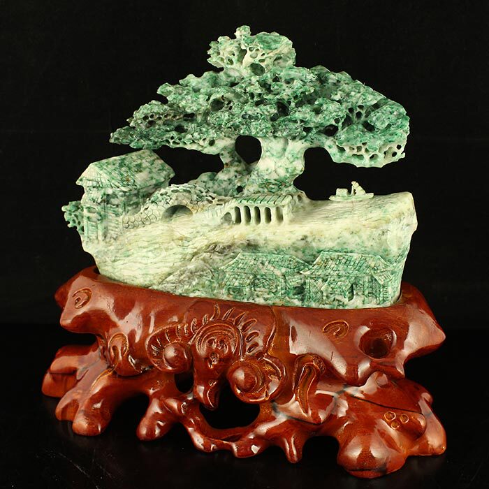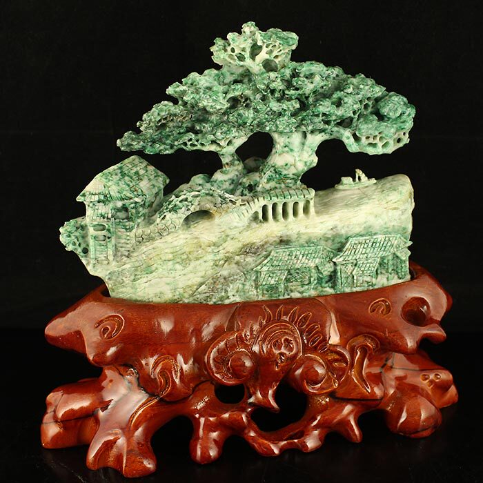 One-mouth price natural Nanyang unique mountain jade Seiko engraving 2 4 catties of heavy swing pieces Pan-boat bounty certificate sending certificate