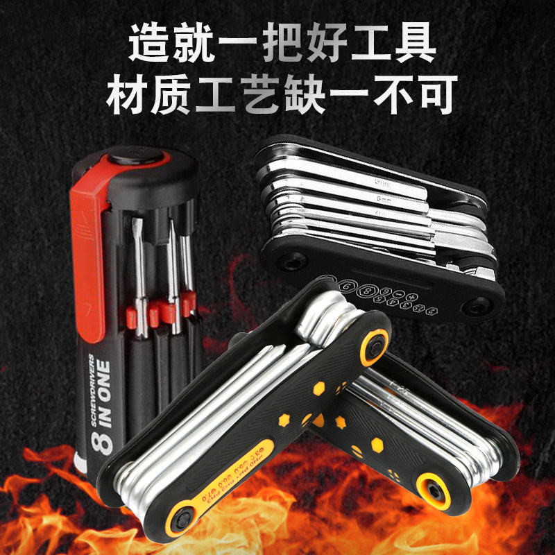 Foldable 8-piece set (hexagon wrench) Foldable 8-piece set (cross type) Foldable 8-piece set (plum blossom with hole type) 8-in-1 screwdriver with light (battery-supplied)) 16-in-1 Multi