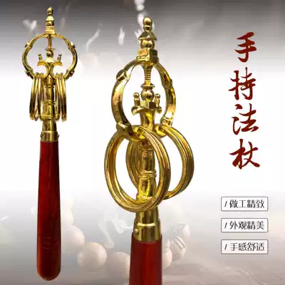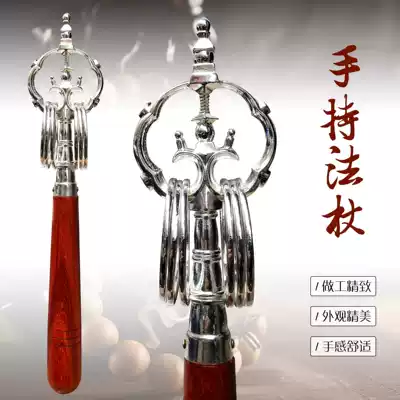 Buddhist dharma tools Buddhist supplies Solid wood handle Alloy Meditation chanting Buddha holding Zen cane Tin cane Staff