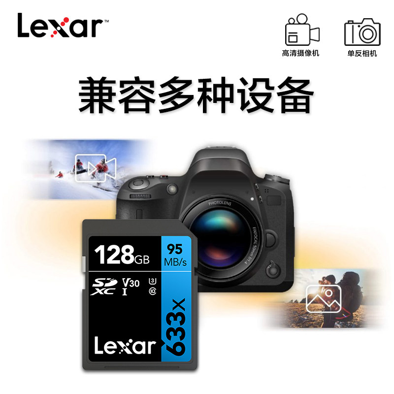 Lexar 128g memory card digital camera sd card 4K high speed U3 SLR camera camera big card 633x
