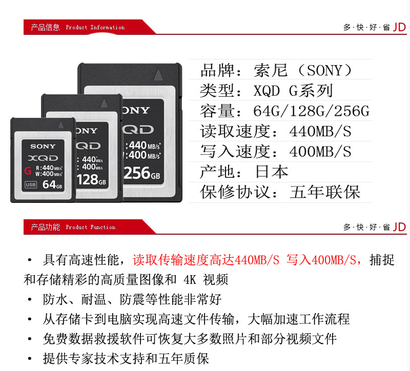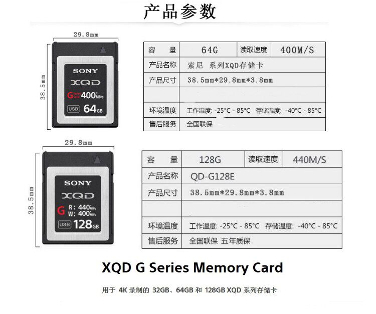SONY Sony XQD Memory Card 64G G Series 400MB S Camcorder AX1E 4K Professional Camera Card
