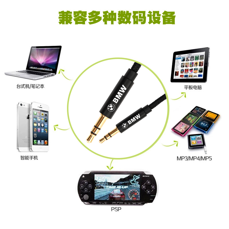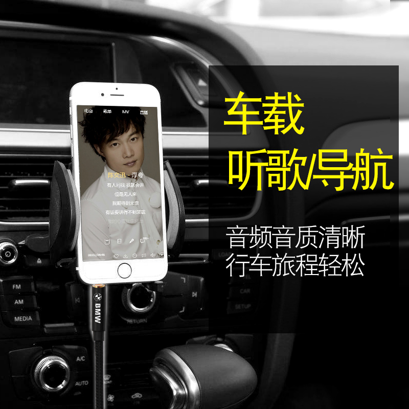 BMWAUX audio cable - 3 5 standard interface-with LOGO-100cm One BMWAUX audio cable-lighting 3 5 standard one-point two-way connection