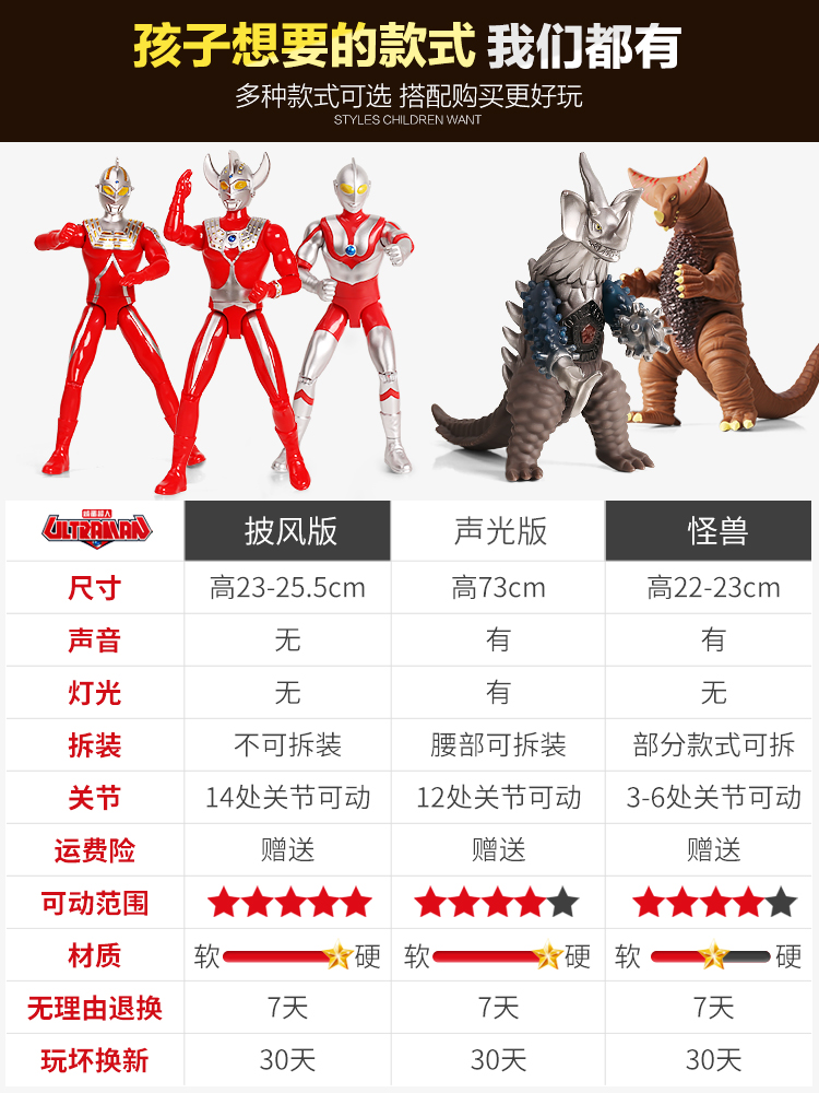 Tyrant monster (with sound effect) Antonla monster (with sound effect) Gomorrah monster (with sound effect) Golden Bridge monster (with sound effect) Ultraman Taro Tyrant monster (gift box)