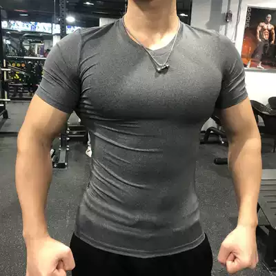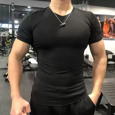 V-neck sports tights Men's quick-drying elastic short-sleeved sweat-absorbing breathable personal trainer clothes Running basketball training T-shirt