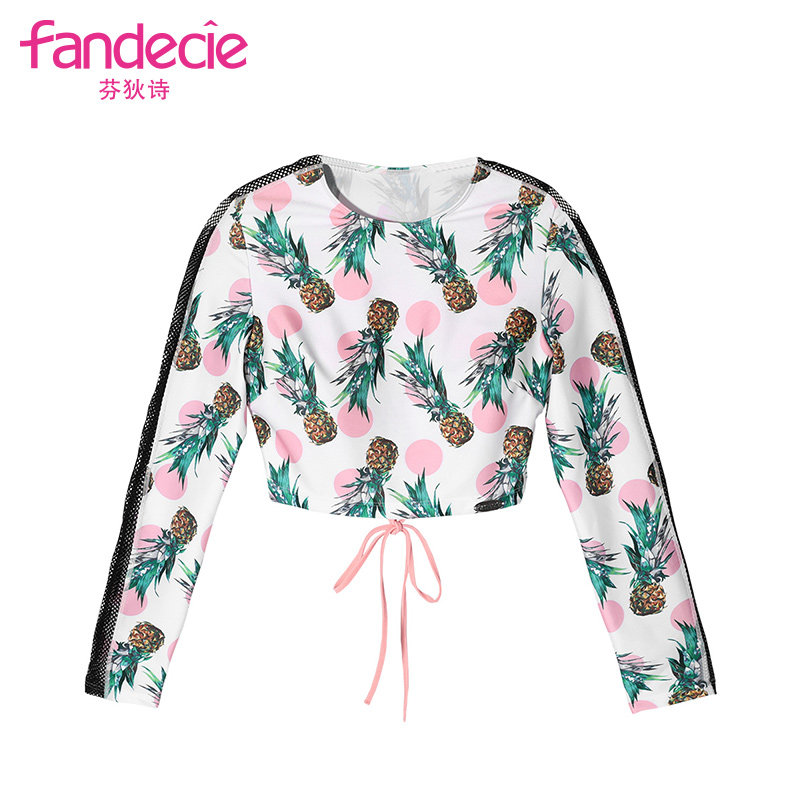 Fendish INS wind swimsuit women's fruit print sexy beauty back strap long sleeve swimsuit FS0695