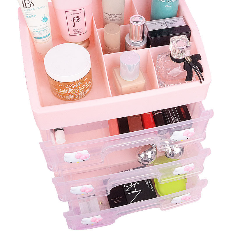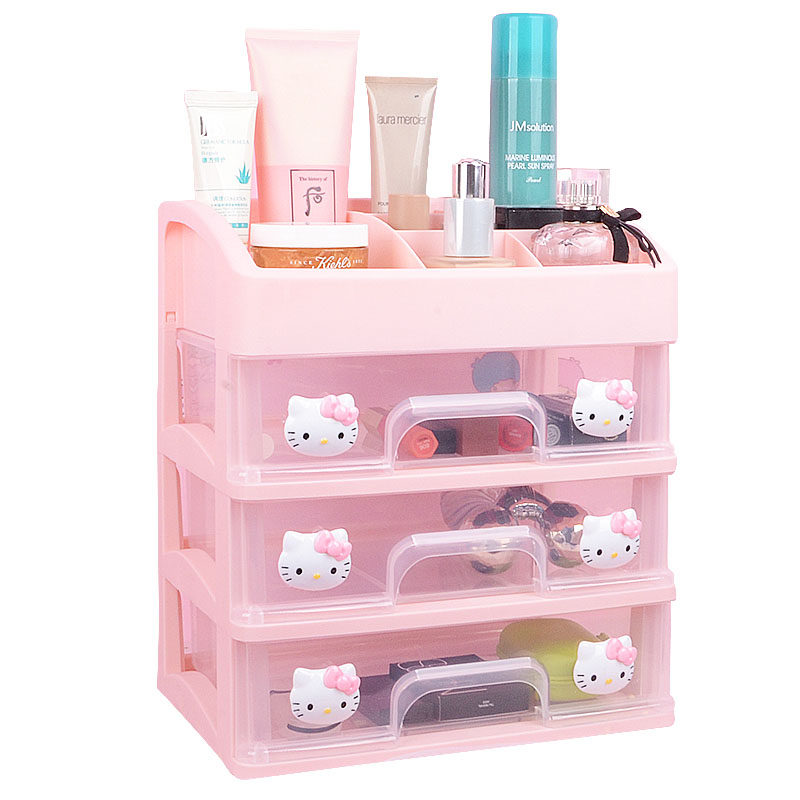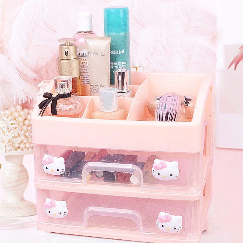Two-floor KT three-layer KT Desktop containing three-layer pink drawer containing three layers of white drawer containing two layers of pink drawer containing two layers of white drawer containing single layer of pink drawer containing single layer of white drawer contained