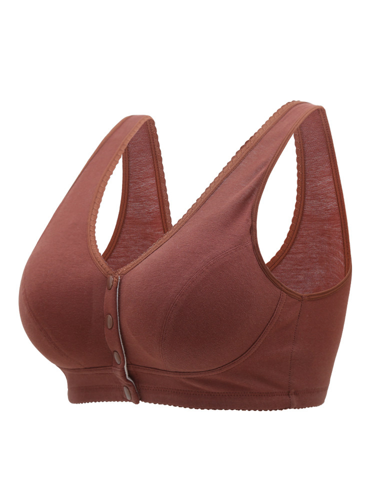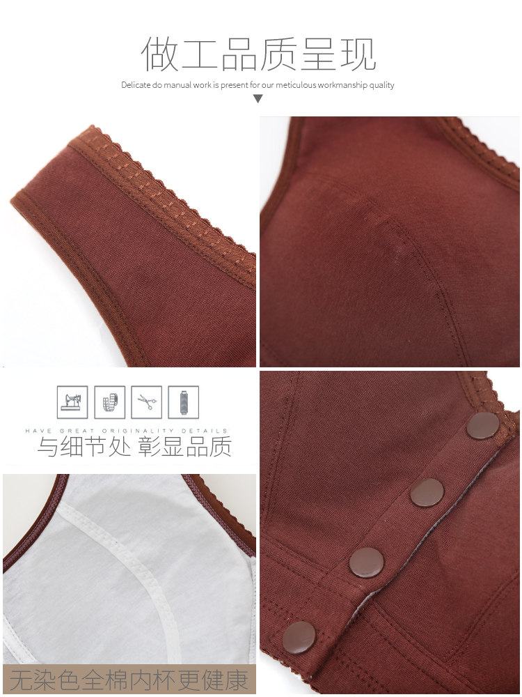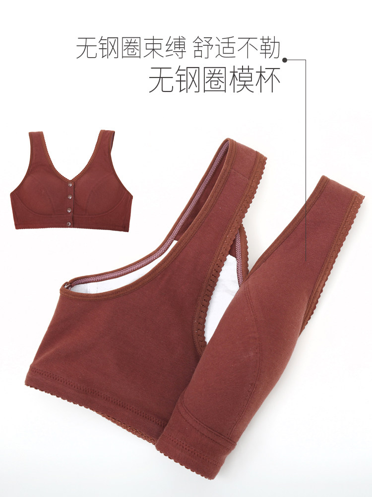 Mother Underwear Bra Woman Middle-aged elderly vest type No steel ring comfort slim fit pure cotton cloth front fastening full cotton bra-Taobao