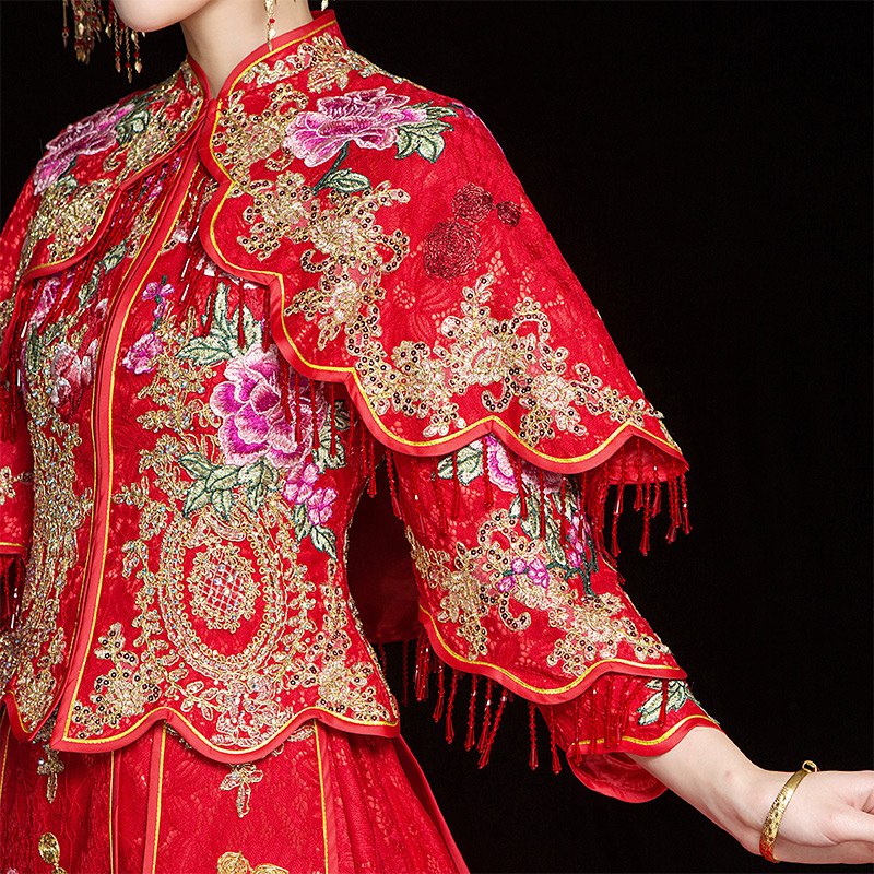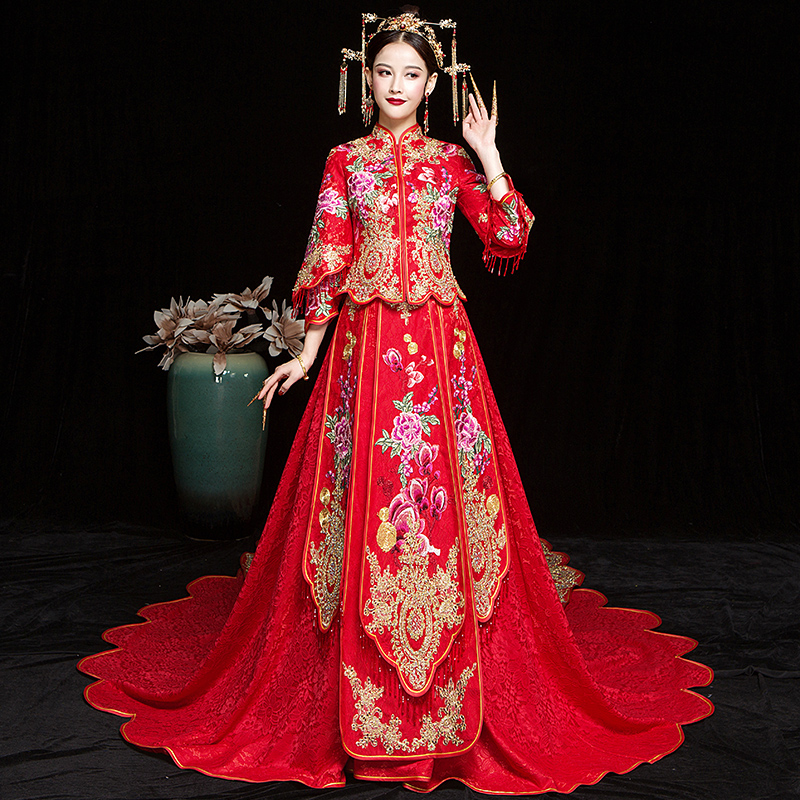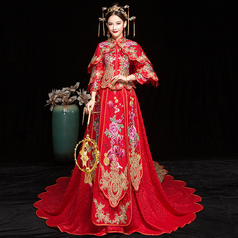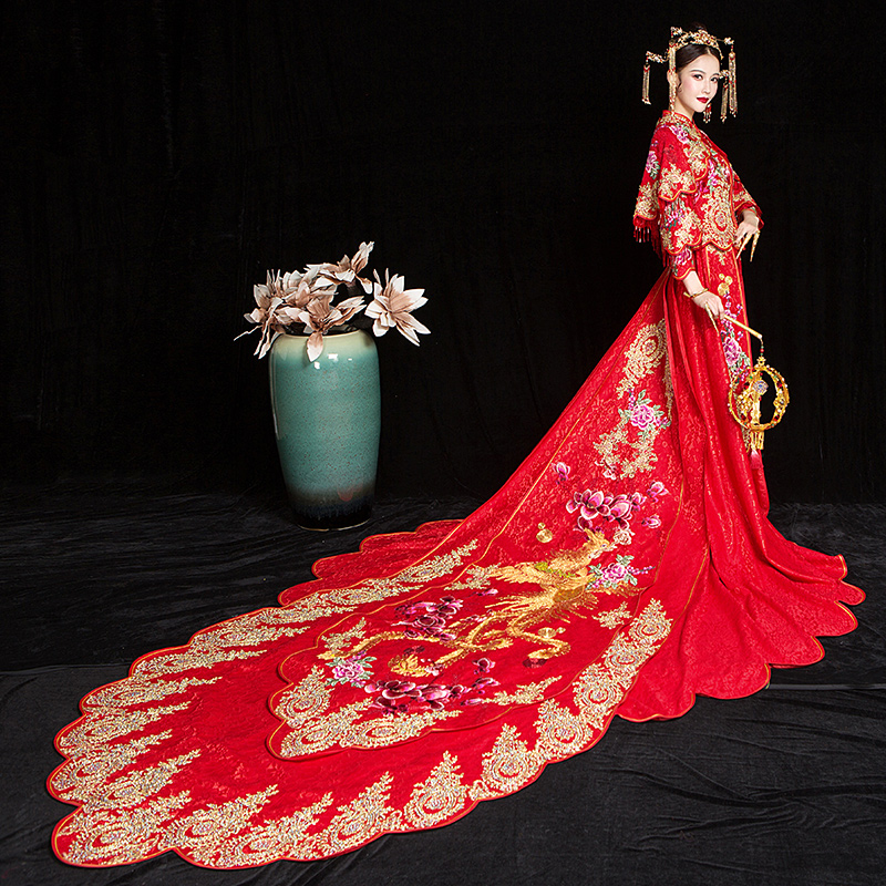 Xiuhe Clothing 2021 New Trailing Bridal Wedding Dress Phoenix Crown Xia Pi Chinese Wedding Dress Shawl Dragon and Phoenix Hanging Winter