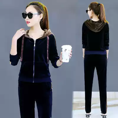 Golden velvet suit women spring and autumn 2021 New Fashion long sleeve sportswear casual women's sweater two-piece set