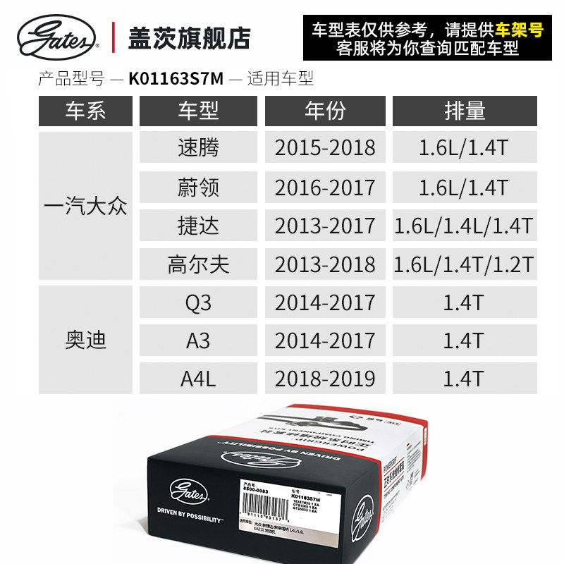 Gates Foss Lavender Golf polo Audi A4L Jetta Santana Sagitar EA211 timing belt set