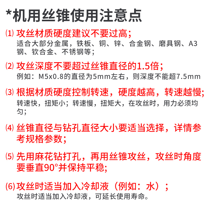 Shi Carpenter machine screw tapping Screw tapping tip spiral machine Cone tapping drill Stainless steel wire thread m4m6m8m10m12