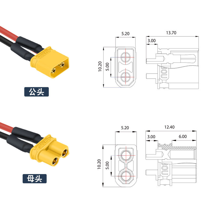 XT30U male head XT30U female head XT30U Notre Dame XT30U male head with line XT30U female head with line XT30U Notre Dame