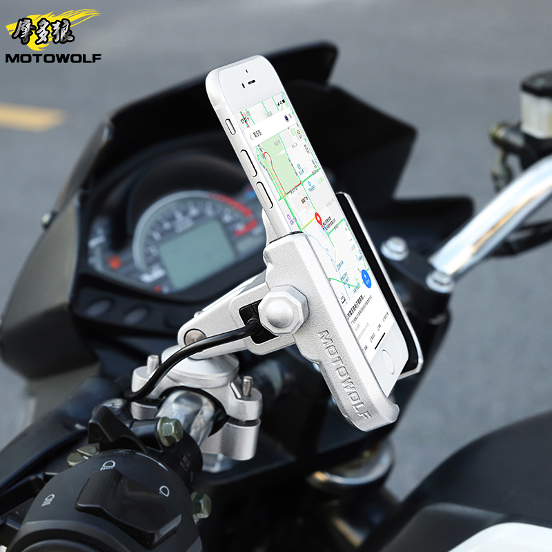 Modowolf aluminum electric motorcycle mobile phone stand bike clip navigation frame motorcycle riding shock proof charging