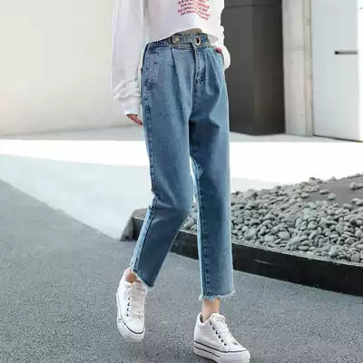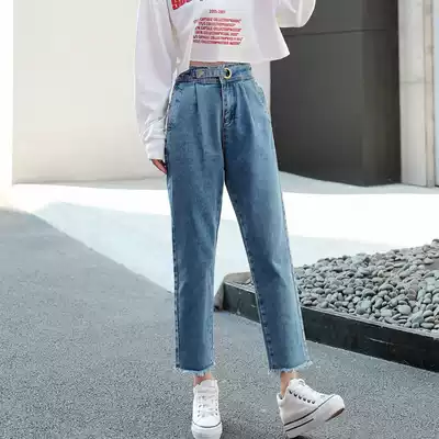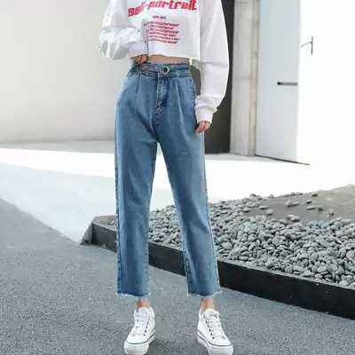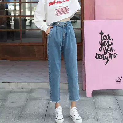 Strange taste women's pants straight jeans women's spring dress 2021 loose Korean version of high waist wide legs student chic pants